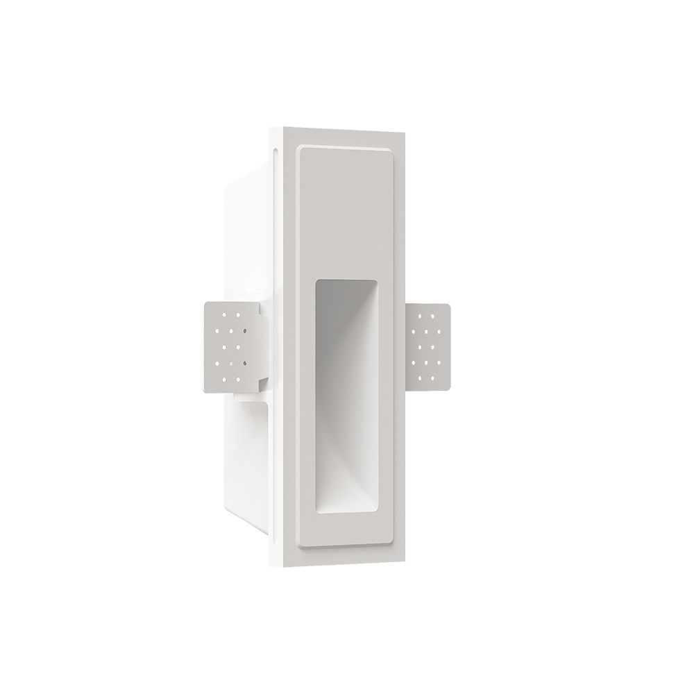 Стеновой встраиваемый гипсовый светильник для установки в стенах из гипсокартона, кирпича, пеноблоков и других материалов. Лаконичный современный дизайн для любых стилей интерьера. Превосходное эстетическое исполнение и полная интеграция в архитектуру стены. Готов к покраске в любой цвет. Экологичен и пожаробезопасен. Простая универсальная конструкция под стандартный/доступный/легко заменимый источник света. Рекомендуемый источник света - лампа LED MR11 GU4 / модуль LED MR11.