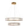 Металлическая арматура в цвете латунь и хром. Хрустальные декоративные кольца с геометричными гранями. LED-источник света. Регулировка цветовой температуры (3000-4000-5000K) и яркости 4G-dimming при помощи пульта (в комплекте).