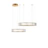 Металлическая арматура в цвете латунь и хром. Хрустальные декоративные кольца с геометричными гранями. LED-источник света. Регулировка цветовой температуры (3000-4000-5000K) и яркости 4G-dimming при помощи пульта (в комплекте).