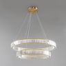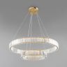 Металлическая арматура в цвете латунь и хром. Хрустальные декоративные кольца с геометричными гранями. LED-источник света. Регулировка цветовой температуры (3000-4000-5000K) и яркости 4G-dimming при помощи пульта (в комплекте).