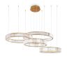 Металлическая арматура в цвете латунь и хром. Хрустальные декоративные кольца с геометричными гранями. LED-источник света. Регулировка цветовой температуры (3000-4000-5000K) и яркости 4G-dimming при помощи пульта (в комплекте).