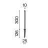 Металлический корпус, цвет - графит. Белый акриловый рассеиватель. Узкий цилиндрический светильник для подсветки растительных насаждений - цветов, кустарников, деревьев, газонов. Установка в грунт. Возможность подключения нескольких светильников к одному источнику питания. LED-источник света, цветовая температура - 3000К. Степень защиты - IP65. Питание 24В.