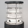 Серия садово-парковых светильников в современном стиле. Установленная в оптической части антибликовая решетка обеспечивает комфорт для наблюдателя и предотвращает световое загрязнение. Использование алюминия в качестве основного материала исключает коррози. Плафон изготовлен из устойчивого к перепадам температур пластика. В качестве источников света используются лампы c цоколем E27.
