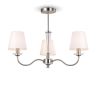 Металлическая арматура в двух оттенках на выбор: латунь и никель. Абажуры – текстиль белого цвета. Декоративные элементы из прозрачного стекла. Источник света – лампа с цоколем E14.
