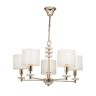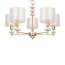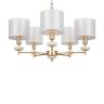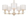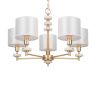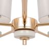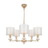 Металлическая арматура золотого оттенка. Абажуры – текстиль на ПВХ кремового цвета. Трендовый керамический декор с имитацией мрамора. Источник света – лампа с цоколем E14.