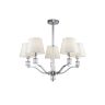 Серия классических светильников в светлой цветовой гамме. Изящные светильники могут стать хорошим дополнением интерьеров гостиных и спален. Дизайн арматуры дополнен декоративными элементами из прозрачного стекла. Абажуры сделаны из белой атласной ткани.