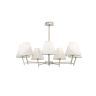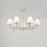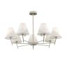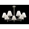 Vanessa – современная лаконичная серия, которая подойдет как к современному, так и классическому интерьеру. Арматура в цвете матовое серебро сочетается с абажурами в бежевой гамме. Акцент в этой серии сделан на двухцветных абажурах, поддерживаемых декоративной скобкой. Серия состоит из люстр на 7 и 5 ламп, торшера, настольной лампы и бра. Высота люстр не регулируется.