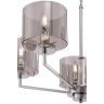 Хромированная металлическая арматура. Плафоны выполнены из дымчатого стекла. Гальваническое напыление создает зеркальный эффект. Плафоны крепятся на скобы, что облегчает эксплуатацию. Источник света – лампа с цоколем E14.
