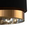 Металлическая арматура. Цвет – латунь. Черный тканевый абажур дополнен окантовкой золотого цвета. Трендовая комбинация контрастных оттенков и фактур. Источник света – лампа с цоколем Е14.