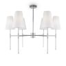 Материал арматуры – металл. Оттенки: хром, комбинация черного и латуни. Абажуры – белая ткань. Акцентный вытянутый силуэт. Источник света – лампа с цоколем E14.
