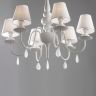 Дизайн светильников – это дуэт вечной классики и высоких технологий. Арматура и абажуры выполнены в приятном для глаз теплом белом цвете. Абажуры сделаны из ПВХ и ткани, а арматура - из стекла и металла. Светильники украшены декоративными стеклянными подвесками в виде капель.