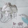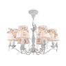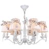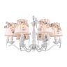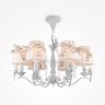 Материал арматуры – металл, цвет – белый антик. Льняные абажуры дополнены лентами. Резные элементы. Символичный декор - фигурки птиц на розетках. Высота люстр регулируется.
