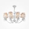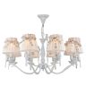 Материал арматуры – металл, цвет – белый антик. Льняные абажуры дополнены лентами. Резные элементы. Символичный декор - фигурки птиц на розетках. Высота люстр регулируется.