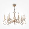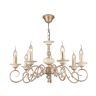 Металлическая арматура, цвет – золото с кремовыми вставками. Декоративные рожки с флористическими элементами. Источники света в форме свечей. Высота люстр регулируется длиной цепи.