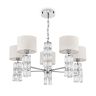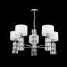 Арматура из металла, цвет – хром. Абажуры из текстиля, нанесенного на ПВХ. Цвет – белый. Декор – массивные кристаллы сложной огранки. Высота подвесных моделей регулируется.