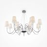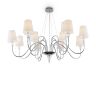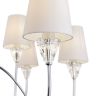 Массивный декор стеклянных граней выделяет светильники этой серии среди других моделей. Хромированную металлическую арматуру мягко оттеняют белые хлопковые абажуры. Рассеивая свет, они дарят уютное, атмосферное освещение. Классическая грациозность светильников выражена в элегантных изгибах рожков и подчеркнутой гармонии оттенков. Серия включает регулируемую по высоте подвесную люстру на 12 и 9 плафонов, две настольные лампы, а также бра на один и три плафона.