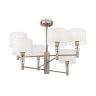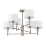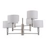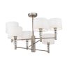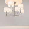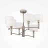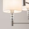 Металлическая арматура с гальваническим покрытием, цвет – никель. Абажуры из белого текстиля, нанесенного на ПВХ. Декор рожков – граненые кристаллы.