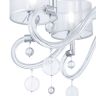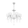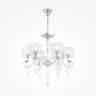 Хромированная металлическая арматура. Абажуры из белой органзы на ПВХ. Декор – прозрачное выдувное стекло. Крепление 2 в 1 – монтаж с цепью и без нее.