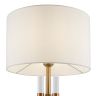 Металлическая арматура. Цвет – латунь. Тканевые абажуры белого оттенка. Декор – прозрачные акриловые трубки. Трендовая комбинация фактур и материалов. Широкий ассортимент. Торшер и подвес с цоколем Е27, лампа, бра и люстры – Е14.