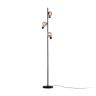 Металлическая арматура, цвета — чёрный и латунь. Прозрачные плафоны-лампочки из стекла в тон арматуры хаотично “разбросаны” по острову светильника. Подвесы регулируются по высоте. Источник света — лампа с цоколем G9.