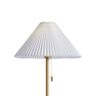 Материал арматуры — металл и дерево, цвет металла— латунь. Настольный, подвесной светильник и торшер с цоколем E27. Белый тканевый абажур гофрированный рельеф. Переключатель на настольной лампе и торшере на цепочке. Подходят для классических и современных интерьеров.