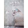 Материал арматуры – металл, цвет – белый антик. Льняные абажуры дополнены лентами. Резные элементы. Символичный декор - фигурки птиц на розетках. Высота люстр регулируется.