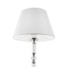 Материал арматуры – нержавеющая сталь, цвет – хром. Материал абажуров – текстиль на ПВХ, цвет – белый. Декор – прозрачное стекло. Акцентные стеклянные кристаллы на рожках со сложной огранкой.