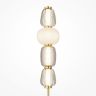 Металлическая арматура, цвет - золото, хром. Микс плафонов округлых и вытянутых форм из белого матового и прозрачного стекла с сетчатым и с линейным повторяющимся рельефным рисунком. Регулируемая высота подвесных моделей, провод - 3 метра. LED-источник света, цветовая температура 3000К.