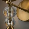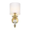 Материал абажура — ткань, цвет — белый. Металлическая арматура в цвете латунь обрамлена хрустальными бусинами. Источник света — лампы с цоколем Е14. Степень защиты — IP20.