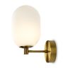 Арматура из металла цвета латуни. Плафоны овальной формы из белого матового стекла. Форма плафонов дает рассеянный свет, максимальная пропускная способность. Источник света лампа. Цоколь G9. Широкая линейка позволяет организовать комплексное освещение в едином стиле.