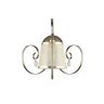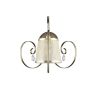 Абажуры и арматура светильников выполнены в разных цветах, с несколькими видами арматуры. Основание люстры украшено стеклянным декоративным элементом, а завитки рожков украшают подвески.