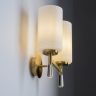 Металлическая арматура: латунь или никель (новинка серии).Белые стеклянные плафоны цилиндрической формы, направленные вверх.. Хрустальное основание с акриловыми каплями. Лампа E27.