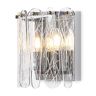 Материал арматуры — металл, цвет — хром. Светильники выполнены из хрусталя с рисунком "frozen". Подвесные светильники и бра с цоколем E14. Современный дизайн арматуры, дугообразные формы с хромированной отделкой подчеркивают декоративные хрустальные элементы. Подходит для современных интерьеров.