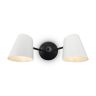 Арматура и плафоны выполнены из металла. Цвет арматуры – черный. Плафоны белого оттенка. Оригинальная форма плафонов с косым срезом. Источник света – лампа с цоколем E14.