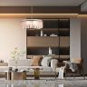 Металлическая арматура. Оттенки – латунь, никель. Декор – фактурные прямоугольные пластины. Материал декора – стекло. Подвесные светильники можно размещать на ножке и устанавливать как потолочный свет. Источник света – лампа с цоколем Е14.