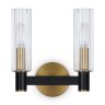 Арматура из металла сочетает два оттенка: черный и латунь. Плафоны цилиндрической формы выполнены из рельефного прозрачного стекла. Актуальная геометрия с настроением американской классики. Источник света – лампа с цоколем E14.