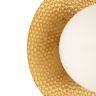 Арматура из металла, цвет – латунь. Плафоны сферической формы из матового белого стекла. Плоские розетки с эффектом чеканки. Трендовый микс фактур. Источник света – лампа с цоколем Е27.