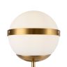 Материал арматуры – металл, цвет – латунь. Плафоны из матового белого стекла. Декор плафонов – металлический кант в тон арматуре. Оригинальная геометрия в дизайне создает динамичный образ. Источник света – лампа с цоколем Е27.