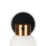 Металлическая арматура, цвет - черный + латунь. Стеклянные плафоны в двух оттенках - матовый белый или дымчатый. Направление плафонов в разные стороны позволяет распределить свет максимально равномерно. Источник светал - лампы с цоколем G9.
