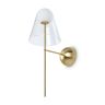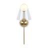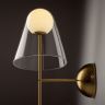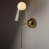 Арматура — металл, цвет — латунь. Двойные плафоны из стекла. Внешний — прозрачный в форме конуса плавно обрамляет контуры внутреннего матового сферического плафона. Свежий взгляд в дизайне на комбинацию форм и фактур. Источником света служит лампа с цоколем G9.