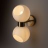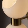 Металлическая арматура в цвете латунь. Открытые сферические плафоны в 2-х цветах: тёплый белый и тёмный гальванизированный. Плафоны разделены металлической вставкой в цвет арматуры. Источником света является лампа с цоколем G9. Для бра - цоколь Е27.