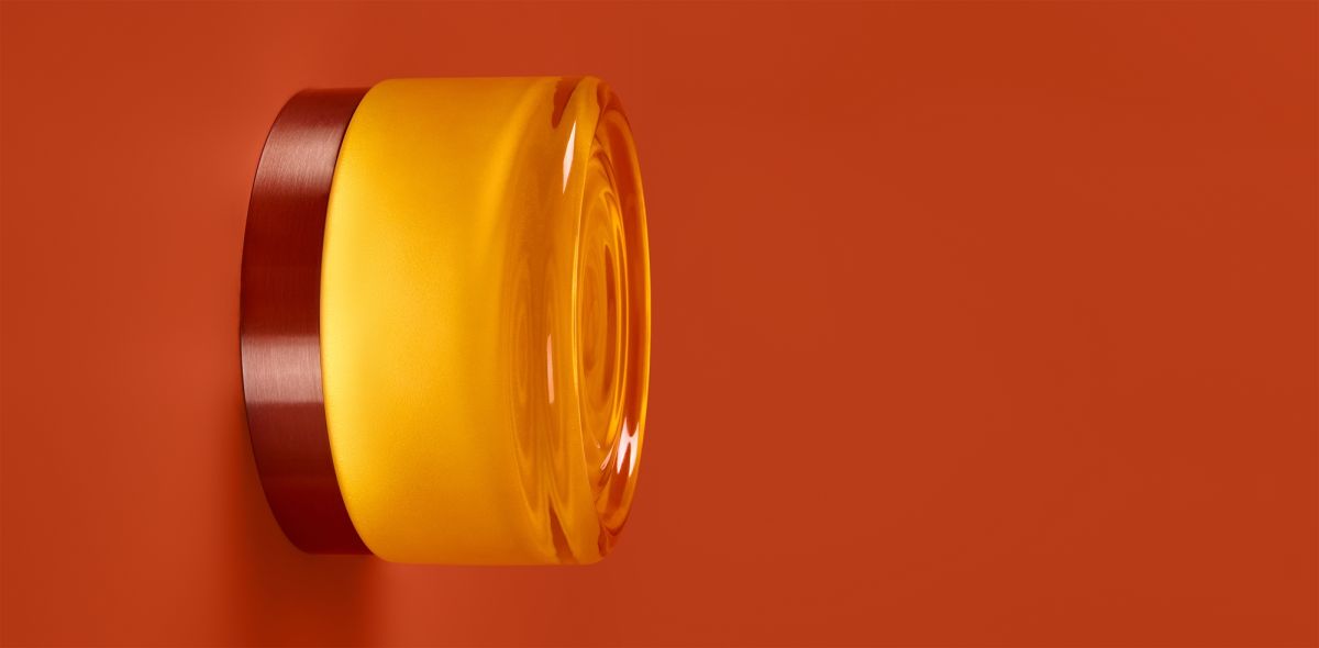Металлическая арматура в цвете никель в трех рельефных основаниях. Плафоны, выполненные в приглушенно пшеничном и янтарном оттенках, доступны в двух размерах. LED источник света 2400К/2550К/3000K.