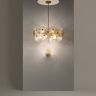 Металлическая арматура в золотом цвете. Сферический декор из штампованного рельефного стекла. Комбинация янтарного и прозрачного оттенка в декоре. Регулируемая высота.