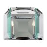Арматура из металла, цвет – хром. Плафон составляют пластины из прозрачного оптического стекла. Металлический каркас плафона окрашен в тон арматуре. Высота подвесных моделелей регулируется.