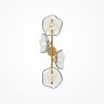Арматура - металл, цвет - латунь. Плафоны-соцветия из литого стекла в плавных формах. Эффектные световые блики на плавных рельефах плафона. Источник света - лампа с цоколем G9.