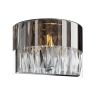 Арматура из нержавеющей стали в двух оттенках: хром, золото. Плафон из выду вного стекла, внутри – хрустальные подвесы. Часть плафона с зеркальным покры тием в тон арматуре. Цоколь Е14.