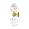 Металлическая арматура. Цвета — золото. Плафоны – прозрачное литое стекло. Эффектный дизайн с крупными гранями. Регулируемая высота. Источник света — лампа с цоколем G9.