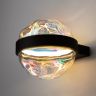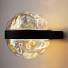 Цвет арматуры — черный. Материал арматуры — металл. Материал плафона — литое стекло с эффектом «multicolor». Оригинальный волнообразный дизайн плафона. LED-элемент в форме кольца вокруг плафона. Цветовая температура 3000К. Яркие плавные световые орнаменты на окружающих поверхностях. Подвесные модели (одиночные и композиция из трех) и бра. Значительный световой поток благодаря мощной LED-ленте с матовым рассеивателем.