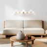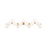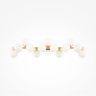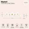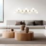 Металлическая арматура в четырех цветах: матовый черный, хром, золото, латунь. Плафоны — выдувное стекло. Цвета — дымчатый, янтарный, коньячный. Дизайн с имитацией молекулярной структуры. Высота подвесных светильников регулируется тросом. Лампа с цоколем G9.