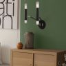 Металлическая арматура в матовом черном цвете. Цилиндрические плафоны вра щаются на 340° по горизонтали и 90° по вертикали. Возможность видоизменять дизайн светильника. Рассеиватель из матового стекла.